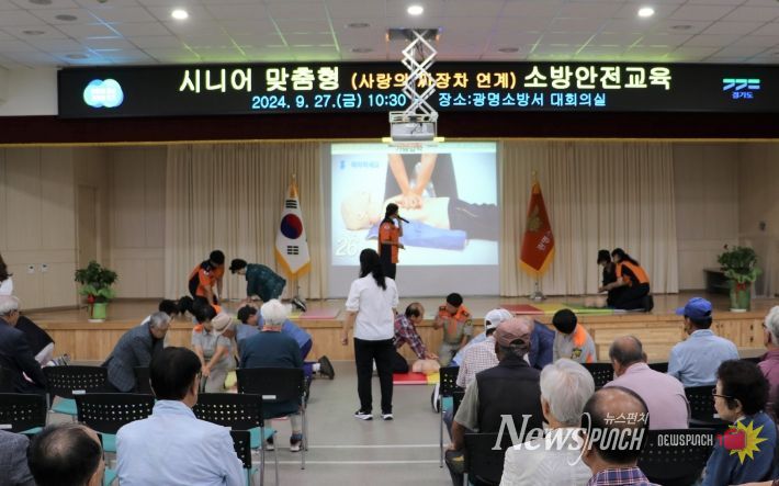 뉴스펀치 탁상훈 기자 | 광명소방서는 27일 광명시 노인회 회원 약 100여분을 초청하여 119와 함께하는 어르신 소방안전교육을 실시 했다고 밝혔다.