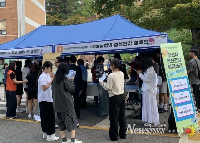 뉴스펀치 탁상훈 기자 | 오산시정신건강복지센터 부설 자살예방센터는 26일 오산대학교 축제(해울제)에서 오산대학교 재학생을 대상으로‘청년 자살예방 인식개선 캠페인’을 진행했다.