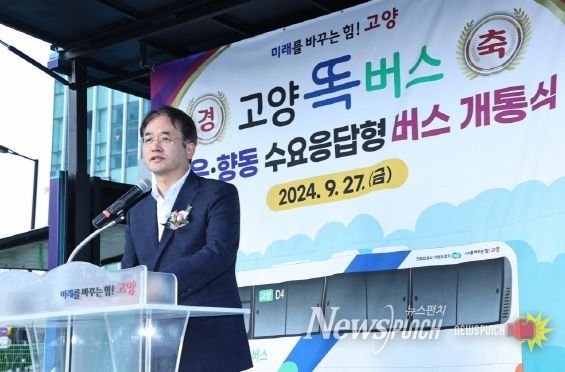 뉴스펀치 탁상훈 기자 | 고양특례시는 27일 16시 덕양구 향동동 527에서 이동환 시장, 고양시의회 김운남 의장을 비롯해 한준호 국회의원, 도의원, 시의원, 대덕동·화전동 직능단체장, 주민 등이 참석한 가운데 ‘덕은·향동 똑버스 개통식’을 개최했다고 밝혔다.