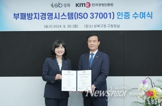 뉴스펀치 김완규 기자 | 서울 성북구가 한국경영인증원(KMR)으로부터 부패방지경영시스템 관련 국제 표준인 ISO 37001 인증을 획득했다.