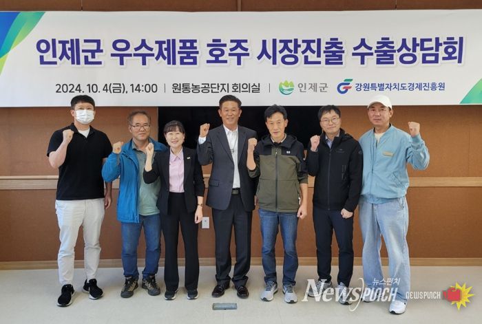 뉴스펀치 김호정 기자 | 인제군은 10월 4일 원통농공단지 대회의실에서 관내 기업의 호주 시장 진출을 위한 수출 설명회 및 간담회를 개최했다.