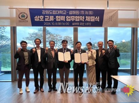 뉴스펀치 김호정 기자 | 강원도립대학교는 10월 8일 설해원과 지역관광산업 발전 및 전문 인력 양성을 위한 상호 교류ㆍ협력 업무협약을 체결했다.
