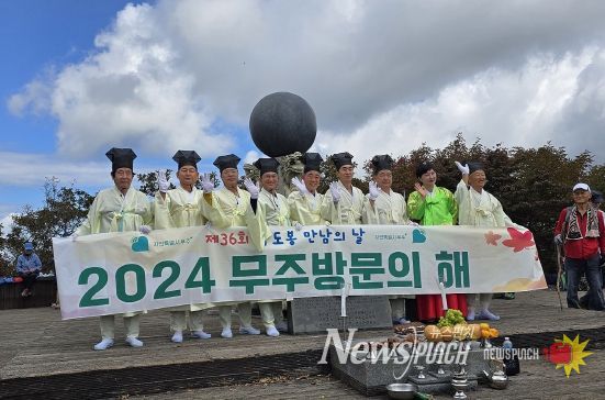 뉴스펀치 유동국 기자 | 제36회 삼도봉 만남의 날 행사가 지난 10일 설천면 미천리 삼도봉 정상(1,176m) 대화합 기념탑에서 개최됐다.
