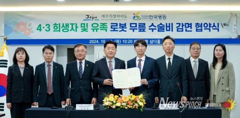 뉴스펀치 천세두 기자 | 제주특별자치도와 혜인의료재단 한국병원이 4·3의 아픔을 겪은 13만 명의 생존희생자 및 고령 유족들의 편안한 노후를 위해 로봇 무릎 인공관절 수술비 감면을 지원하기로 뜻을 모았다.