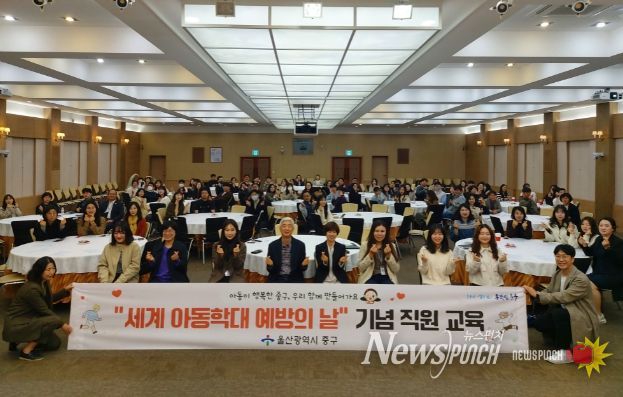 뉴스펀치 임정용 기자 | 울산 중구가 제17회 세계 아동학대 예방의 날을 맞아 11월 8일 오전 10시 중구청 대회의실에서 아동학대 예방 직원교육을 실시했다.