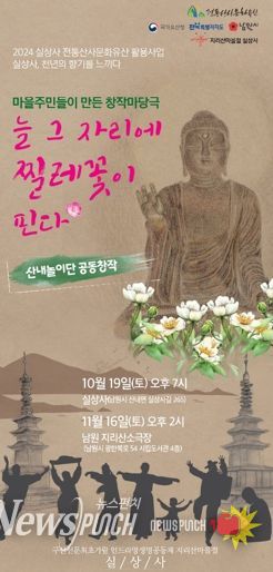 뉴스펀치 유동국 기자 | 지리산 실상사는 마을주민들이 만든 마당극을 오는 10월 19일 오후 7시 실상사에서, 11월 16일 오후 2시 남원시 지리산 소극장에서 선보인다.