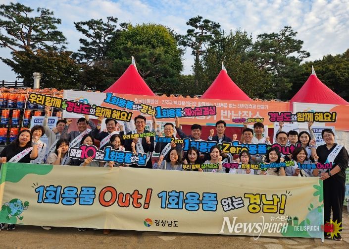 뉴스펀치 김길룡 기자 | 경상남도와 낙동강유역환경청은 16일 오후 진주 남강유등축제 현장에서 진주시와 합동으로 찾아가는 일회용품 사용 줄이기 캠페인을 진행했다고 밝혔다.