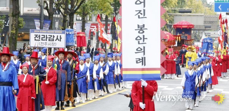 전주시는 19일 전주시청 앞 노송광장에서 충경로사거리와 풍남문사거리를 지나 경기전 구간까지 진행된 태조어진 봉안행렬이 많은 시민과 관광객의 관심과 참여 속에 마무리됐다고 밝혔다.