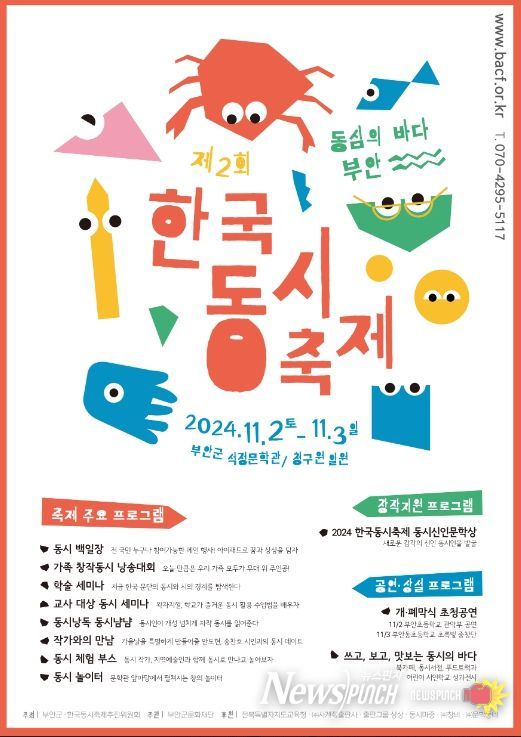 뉴스펀치 유동국 기자 | 부안군과 한국동시축제추진위원회가 주최하고 (재)부안군문화재단(이사장 권익현)이 주관하는''동심의 바다, 부안' 제2회 한국동시축제'(이하 한국동시축제)가 오는 11월 2일 토요일과 3일 일요일 양일간 전북 부안군 석정문학관 일원에서 개최된다.