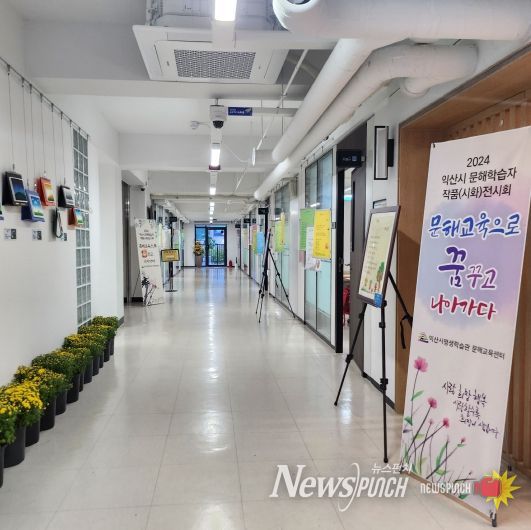 이번 전시는 무궁화야학교 등 기초문해교육 기관 4개소가 함께하며, '2024 전국 성인문해교육 시화전'과 '익산시 문해학습자 백일장대회' 출품작으로 구성됐다.