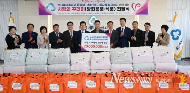 뉴스펀치 임정용 기자 | 울산 중구 새마을금고 이사장협의회(회장 조용수)가 11월 9일 오전 11시 30분 중구자원봉사센터(이사장 박민호)에서 운영하는 중구푸드뱅크에 2천만 원 상당의 사랑의 꾸러미 315개를 전달했다.