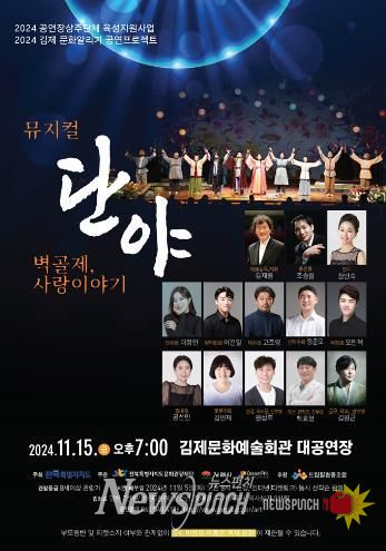 뉴스펀치 유동국 기자 | 김제시문화예술회관에서 창작 뮤지컬 '단야 벽골제 사랑이야기'가 오는 11월 15일 오후 7시 대공연장에서 펼쳐진다.