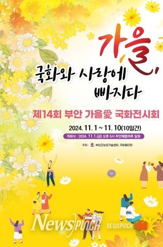 뉴스펀치 유동국 기자 | 부안군은 11월 1일 17시 개막식을 시작으로 11월 10일까지 10일간 제14회 부안 가을愛 국화전시회를 전북특별자치도 지방정원으로 등록된 해뜰마루 일원에서 개최한다.