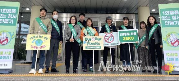 뉴스펀치 임정용 기자 | 이번 캠페인은 1회용품 사용 근절에 대한 직원들의 지속적인 관심과 참여 유도를 위해 직원들의 출근 시간에 맞춰 본관 1층 입구에서 진행되었으며, 청사 내 및 일상생활 속에서 1회용품 사용 줄이기에 적극 동참하여 줄 것을 호소했다.