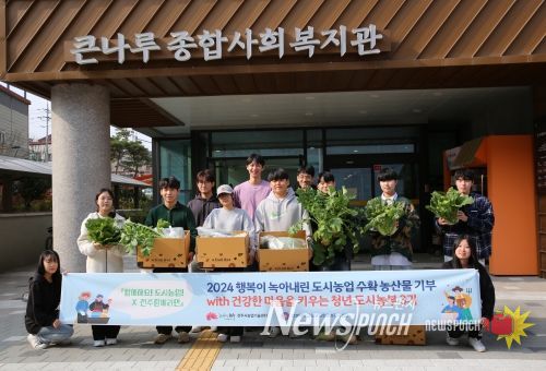 또 건강한 마음을 키우는 청년 도시농부 프로그램에 참여하는 전북대학교 영농창업특성화 사업단 학생들도 이번 기부에 동참하여, 학생들이 학교 안에서 직접 심고 가꾼 배추, 무, 쪽파 등을 수확해 전달했다.