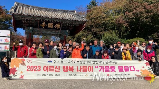 뉴스펀치 임정용 기자 | 울산 중구 동(洞) 지역사회보장협의체 연합회(회장 김광석)가 11월 13일 경북 경주시 일대에서 저소득 홀몸 어르신과 함께하는 ‘가을愛 물들다’ 나들이 행사를 진행했다.