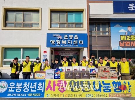 뉴스펀치 유동국 기자 | 남원시 운봉청년회는 동절기 대비 취약계층 4가구 대상 총 100만원 상당의 연탄과 생필품 전달 사랑의 나눔 행사를 추진했다.