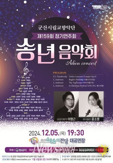 뉴스펀치 유동국 기자 | 군산시립교향악단이 12월 5일 저녁 7시 30분 군산예술의전당 대공연장에서 시민 연주자들과 함께하는 송년음악회를 개최하여 한 해를 마무리하는 시간을 갖는다.