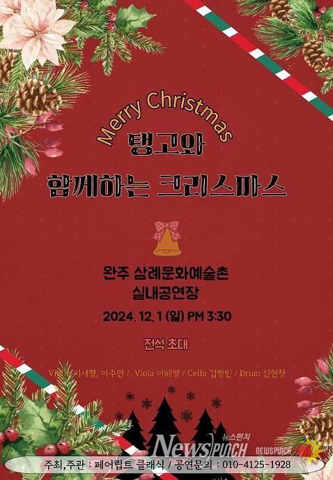 뉴스펀치 유동국 기자 | 삼례에서 열리는 특별한 공연인 ‘탱고와 함께하는 크리스마스’이 오는 12월 1일 일요일 오후 3시 30분에 삼례문화예술촌 실내 공연장에서 열린다.