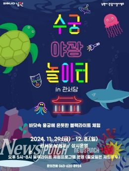 뉴스펀치 유동국 기자 | 남원시는 겨울을 맞아 2024년 11월 29일부터 12월 15일까지 『수궁야광놀이터 in 관서당』을 운영한다. 이번 행사는 매일 오전 9시부터 오후 9시까지 상시 운영되며 특히 야간 프로그램은 오후 5시부터 8시까지 진행되어 관람객들에게 환상적인 겨울밤의 특별한 경험을 선사할 예정이다.