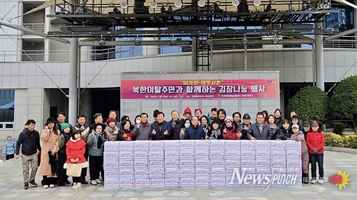 뉴스펀치 유동국 기자 | 민주평화통일자문회의 전북지역회의는 12월 7일 오전 10시에 전북특별자치도청 야외공연장에서 전북거주 북한이탈주민등 150여명과 함께 김장김치 담그기 체험에 나섰다.