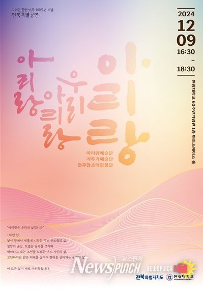 뉴스펀치 유동국 기자 | 전북특별자치도는 고려인 이주 160주년을 기념해 9일 원광대학교 60주년 기념관에서 특별공연 ‘아리랑 아리랑 우리 아리랑’을 개최했다.