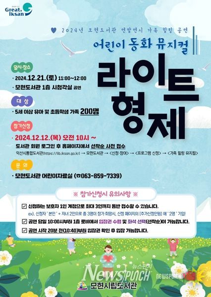 도서관 관계자는 "연말을 맞아 온 가족이 즐길 수 있는 특별한 공연을 준비했다"며 "많은 어린이가 이번 공연을 통해 도서관에서 행복한 추억을 만들고 한 해를 희망차게 마무리하길 바란다"고 전했다.