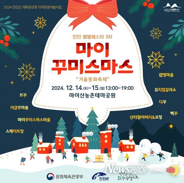 뉴스펀치 유동국 기자 | (사)진안군관광협의회가 오는 14일부터15일까지 마이산 북부 농촌테마공원 광장에서 진안 별별페스타의 마지막 행사인 “마이 꾸미스마스” 겨울동화 축제를 개최한다.