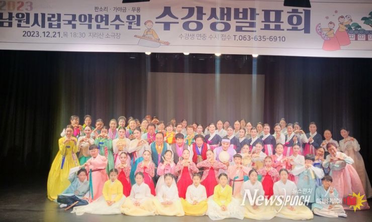 뉴스펀치 유동국 기자 | 남원시립국악원은 오는 12월 19일 오후 18:30 지리산소극장에서 2024 국악연수생 수강 발표회를 개최한다. 이번 발표회는 국악 연수 과정에 참여한 연수생들이 그간 갈고닦은 실력을 선보이는 자리로, 국악에 대한 열정과 노력을 바탕으로 완성된 무대를 통해 관객들에게 깊은 감동을 선사할 예정이다.