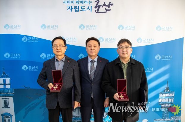 뉴스펀치 유동국 기자 | 군산시는 3일 6.25 참전유공자 故박종설, 故임복기의 유가족에게 화랑무공훈장증을 전수했다. 이번 전수식은 국방부 6.25 무공훈장 찾아주기 조사단에서 추진하는 ‘6.25 전쟁 무공훈장 주인공 찾기 캠페인’의 하나다.