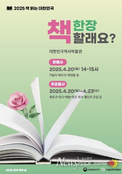 뉴스펀치 김희경 기자 | 문화체육관광부는 한국출판문화산업진흥원과 함께 4월 20일, ‘세계 책의 날’(4월 23일, 공식명칭은 ‘세계 책과 저작권의 날’)을 맞이해 대한민국역사박물관에서 다양한 독서문화행사를 진행한다. 특히 올해는 국민의 독서 생활을 촉진하기 위해 새롭게 추진하는 ‘책 읽는 대한민국’ 캠페인의 시작을 알리고, 책 읽기의 즐거움과 책을 선물하는 문화를 확산할 계획이다. 유인촌 장관도 이번 행사를 통해 독서 문화 확산에 동참한다.