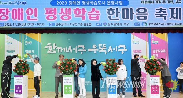 뉴스펀치 조은별 기자 | 광주광역시 서구는 지난 25일 서구청에서 ‘학습공동체로 하나되는 우리’라는 주제로 17개 장애인평생교육기관 교육생 300여 명이 참석한 가운데 ‘장애인 평생학습 한마음 축제’를 개최했다.