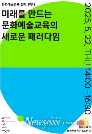 뉴스펀치 김희경 기자 | 문화체육관광부는 한국문화예술교육진흥원(원장 박은실)과 함께 ‘2025 세계문화예술교육주간(5. 22.~28.)’을 맞이해 블루스퀘어 복합문화공간 네모에서 5월 22일과 23일, 정책 세미나와 국제포럼을 개최한다.