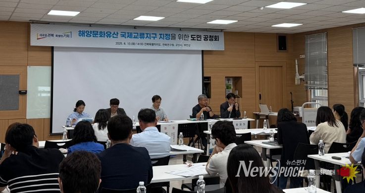 뉴스펀치 유동국 기자 | 전북특별자치도는 10일 소셜캠퍼스 온에서 ‘전북 해양문화유산 국제교류지구’ 지정에 앞서 공청회를 열고, 지정계획(안)을도민과 전문가에게 설명하며 의견을 청취했다.