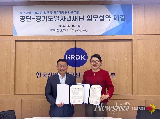 뉴스펀치 탁상훈 기자 | 경기도일자리재단은 16일 한국산업인력공단 경인지역본부와 ESG(환경·사회·지배구조)경영 기반의 주요사업 협업 및 HRD(인적자원개발) 서비스 협력을 위한 업무협약을 체결했다.