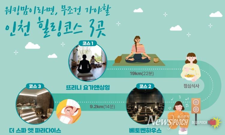 뉴스펀치 탁상훈 기자 | 인천광역시와 인천관광공사는 일과 육아에 지친 워킹맘을 위해, 인천웰니스관광지 중 영종도 지역의 휴식형 명소를 연계한 ‘숨 고르기 웰니스 코스’를 새롭게 선보였다고 17일 밝혔다.