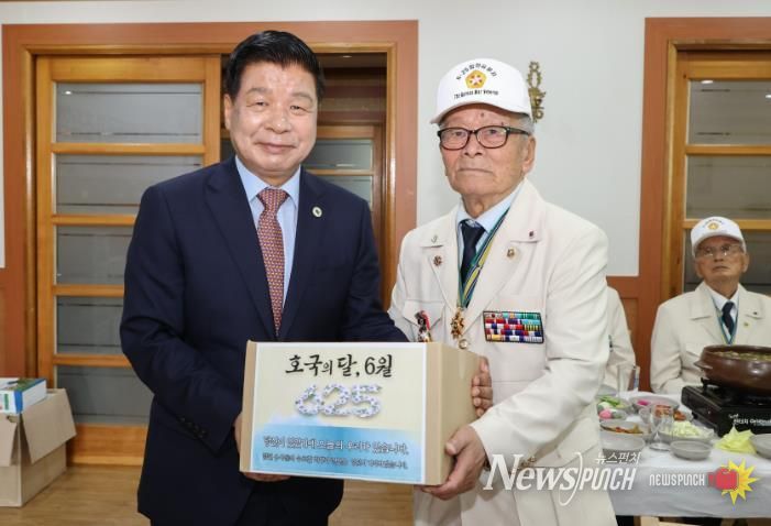뉴스펀치 김길룡 기자 | 고성군 예비군 지역대는 6월 17일 늘봄가든에서 6.25전쟁 제75주년을 맞아 6.25참전유공자들을 모시고 위문행사를 개최했다.