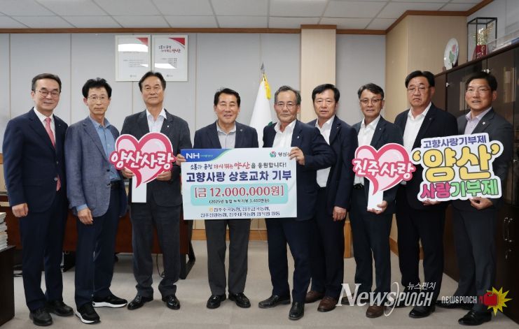 뉴스펀치 김길룡 기자 | 진주시 농협 임직원들이 양산시에 1천200만원의 고향사랑기부를 했다.