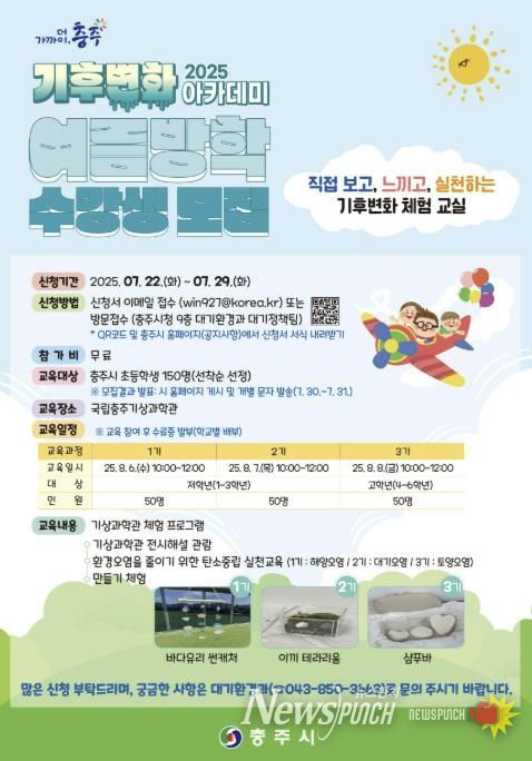 참가 신청은 7월 29일까지 이메일 접수 또는 충주시청 9층 대기환경과로 방문 접수가 가능하며, 선착순으로 선정된다.