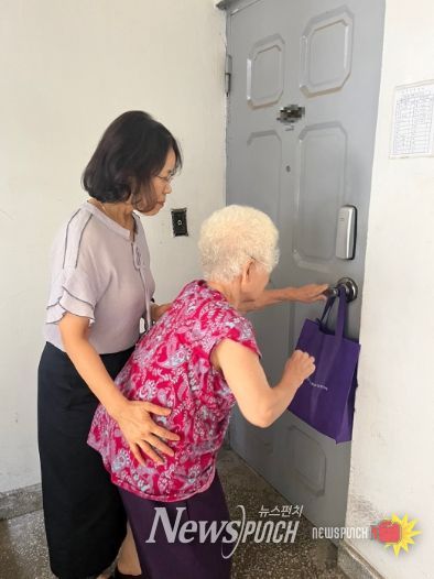 주교동 맞춤형복지팀은 주거 취약계층 가구를 방문해 폭염 대비 건강 수칙과 온열질환 응급조치 사항을 안내하고, COOL 패키지(쿨토시, 물티슈)를 전달했다.