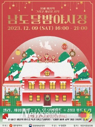 뉴스펀치 조은별 기자 | 광주 동구는 12월 9일 대인예술시장에서 미리 만나는 성탄절을 테마로 하는 ‘남도달밤야시장 시즌 4’을 운영한다고 밝혔다.