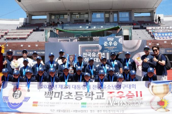 뉴스펀치 탁상훈 기자 | 고양특례시 백마초등학교 야구부가 지난 6일부터 16일까지 광주무등양구장에서 열린‘제2회 대통령배 전국 유소년야구대회’에서 당당히 준우승을 차지했다.