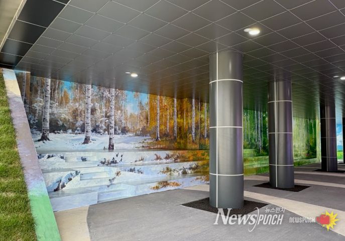 뉴스펀치 김보성 기자 | 평창군은 오는 10월 중 개관 예정인 평창올림픽플라자의 ICT 센터 필로티 구간에 평창의 자연과 관광지, 올림픽의 감동을 다시 한번 느낄 수 있는 새로운 볼거리인 대형 벽화를 조성했다.