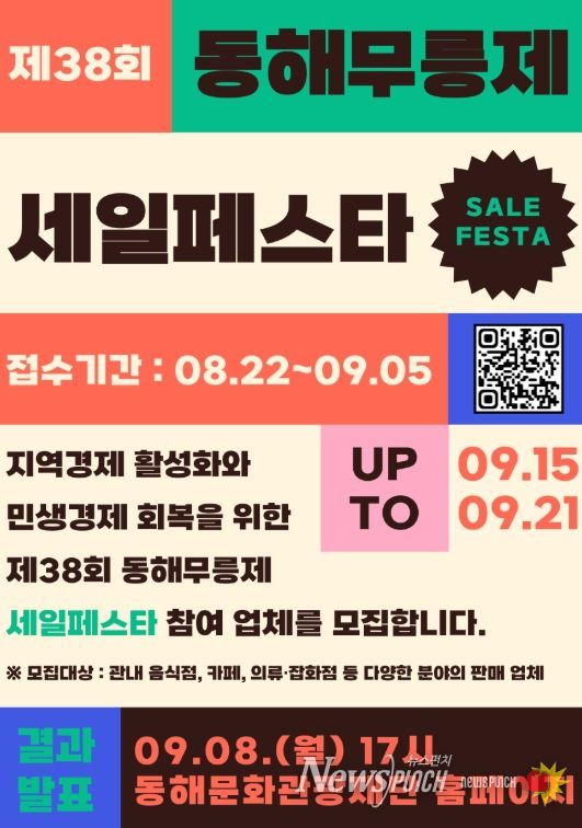 특히, 이번 세일페스타는 ‘하나 된 동해, 희망의 울림’을 부제로 열리는 제38회 동해무릉제와 맞물려, 전통문화와 현대 소비가 함께 조화를 이루는 축제로서의 새로운 가능성을 보여줄 것으로 기대된다.
