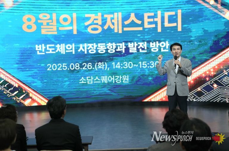 뉴스펀치 김보성 기자 | 강원특별자치도는 8월 26일 오후 2시 30분 소담스퀘어 글로벌디지털스튜디오에서 '반도체의 시장동향과 발전방안'을 주제로 '8월 강원 경제스터디'를 개최했다.