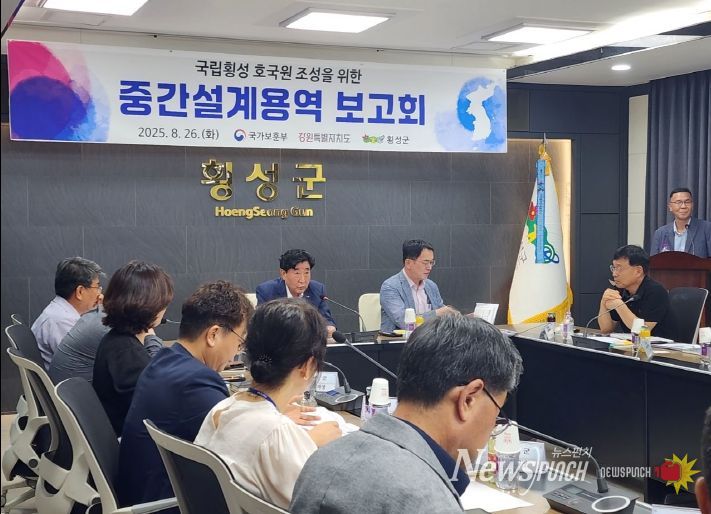 뉴스펀치 김보성 기자 | 국립횡성호국원 조성사업이 본격적인 첫 발을 내딛었다. 횡성군은 지난 26일 군청 2층 회의실에서 국가보훈부, 강원특별자치도와 함께 중간설계용역 보고회를 열고 조성 방향과 협력 방안을 논의했다고 27일 밝혔다.