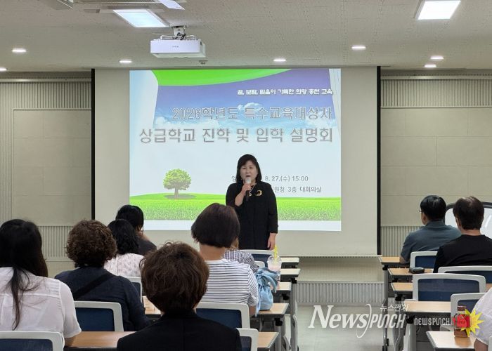뉴스펀치 김보성 기자 | 홍천교육지원청은 8월 27일 오후 3시, 홍천교육지원청 2층 소회의실에서 특수교육대상학생 학부모를 대상으로 ‘2026학년도 특수교육대상학생 상급학교 진학 설명회’를 개최했다.