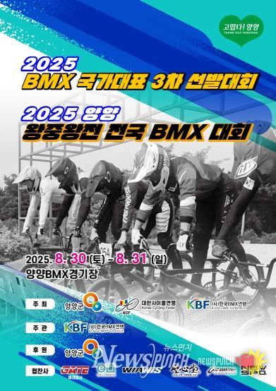 뉴스펀치 김보성 기자 | 양양군은 오는 8월 30일부터 31일까지 양양 BMX경기장에서 '2025 양양 왕중왕전 전국 BMX 대회 및 국가대표 3차 평가전'을 개최한다.
