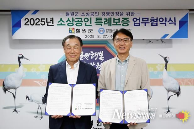 뉴스펀치 김보성 기자 | 철원군은 8월 27일 강원신용보증재단과‘소상공인 특례보증 지원사업’ 업무협약을 체결하고 오는 9월 1일부터 해당사업을 시행할 예정이라고 밝혔다.