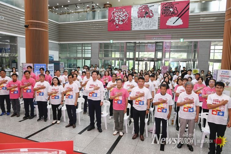 뉴스펀치 김보성 기자 | 원주시는 10월 24일부터 26일까지 열리는 ‘2025 원주만두축제’의 성공적인 개최를 위해, 29일 오후 3시 30분 시장 집무실에서 친환경축제 상생협약을 체결하고 1층 로비에서 시민 서포터즈 ‘만두덕후’를 출범했다.